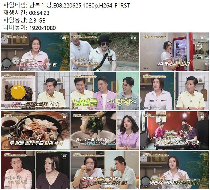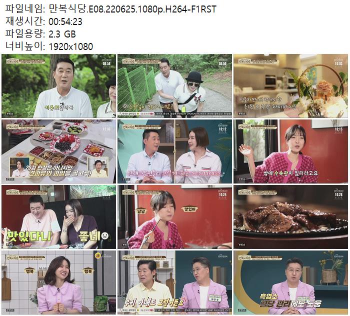 | 만복식당.E08.220625.1080p.H264-F1RST.mp4 | 2.3 G | 00:54:23 | 1920x1080 |