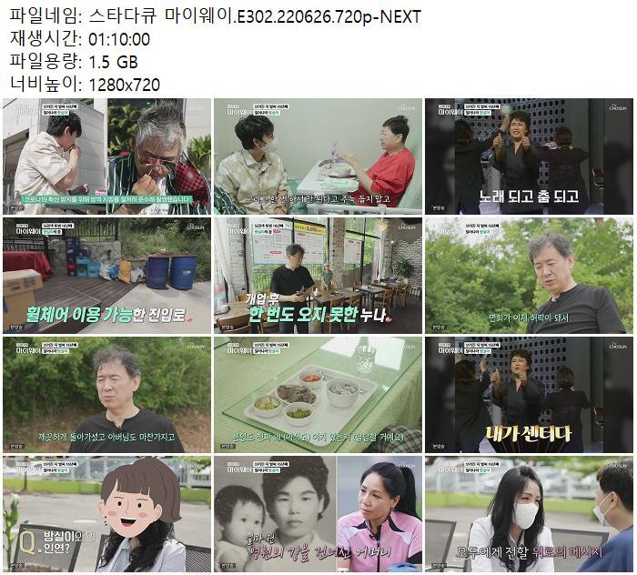 스타다큐 마이웨이.E302.220626.720p-NEXT.mp4 1.5 G 01:10:00 1280x720
