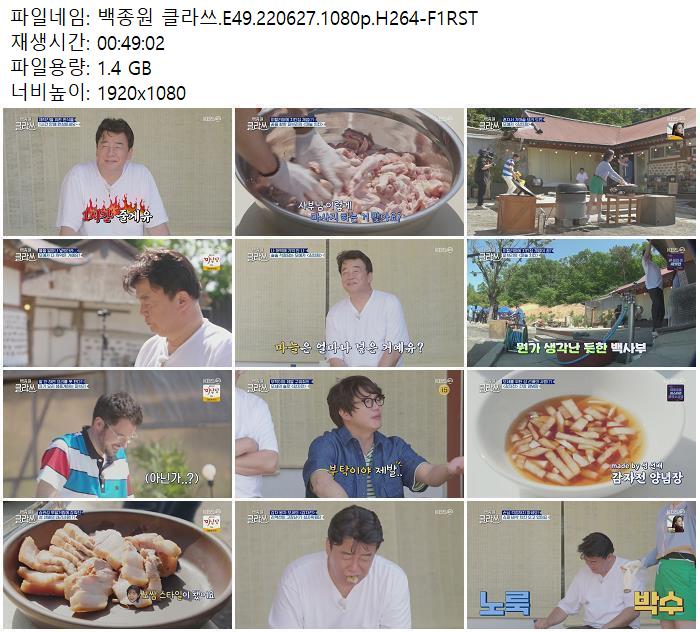 | 백종원 클라쓰.E49.220627.1080p.H264-F1RST.mp4 | 1.4 G | 00:49:02 | 1920x1080 |