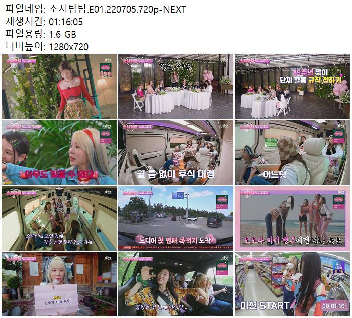 | 소시탐탐.E01.220705.720p-NEXT.mp4 | 1.6 G | 01:16:05 | 1280x720 |