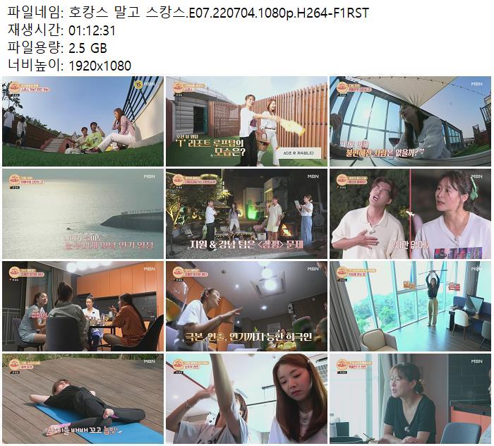 호캉스 말고 스캉스.E07.220704.1080p.H264-F1RST.mp4 2.5 G 01:12:31 1920x1080