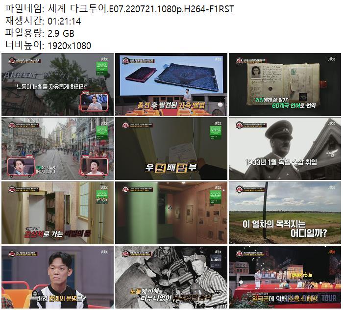 | 세계 다크투어.E07.220721.1080p.H264-F1RST.mp4 | 2.9 G | 01:21:14 | 1920x1080 |
