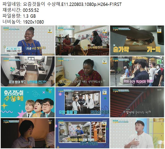 요즘것들이 수상해.E11.220803.1080p.H264-F1RST.mp4 1.3 G 00:55:52 1920x1080