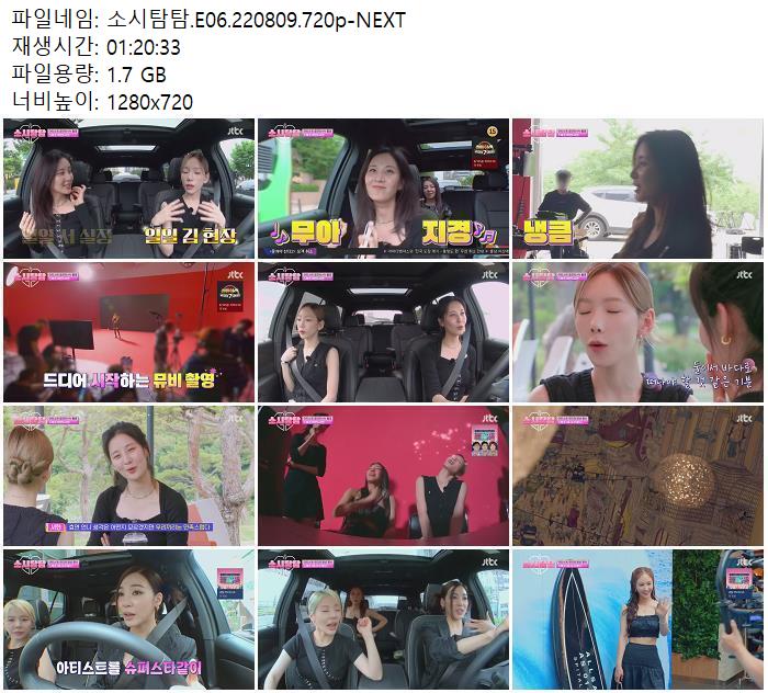 | 소시탐탐.E06.220809.720p-NEXT.mp4 | 1.7 G | 01:20:33 | 1280x720 |