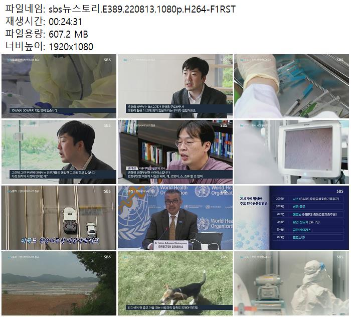 | sbs뉴스토리.E389.220813.1080p.H264-F1RST.mp4 | 607.2 M | 00:24:31 | 1920x1080 |