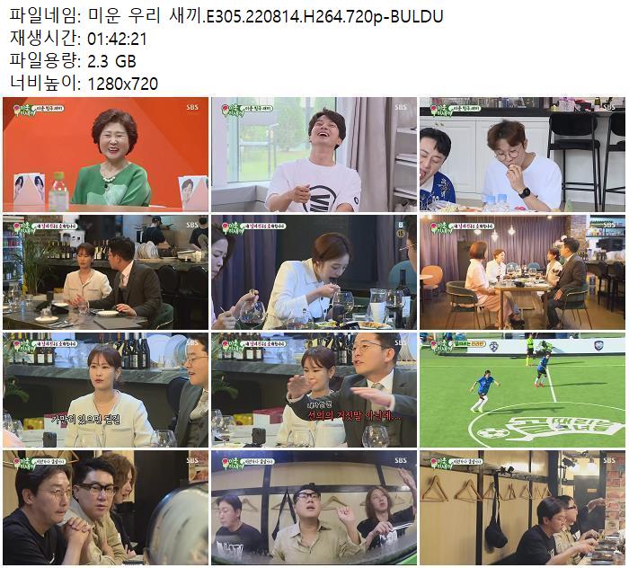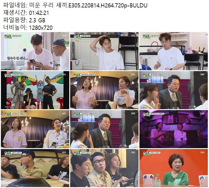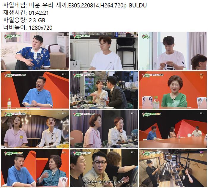 미운 우리 새끼.E305.220814.H264.720p-BULDU.mp4 2.3 G 01:42:21 1280x720