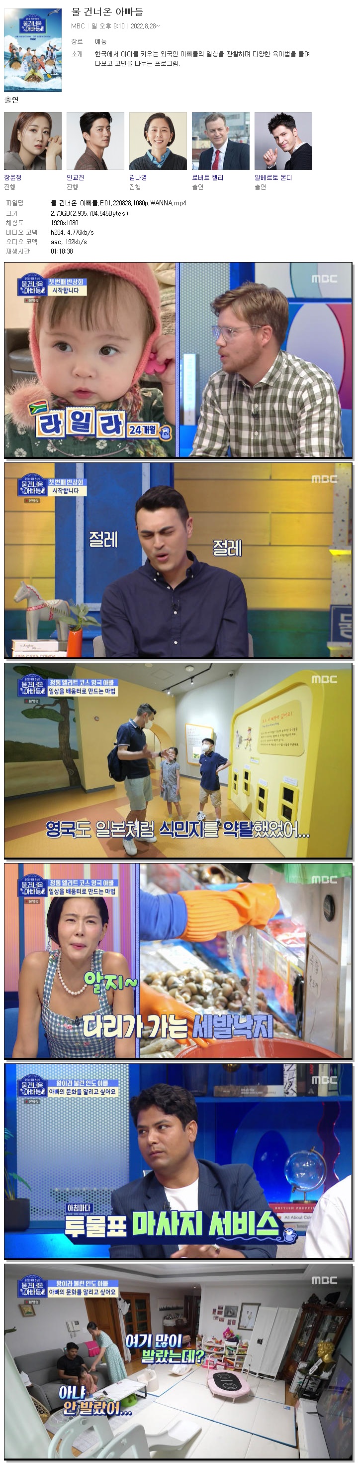 | 물 건너온 아빠들.E01.220828.1080p.WANNA.mp4 | 2.7 G | 01:18:38 | 1920x1080 |