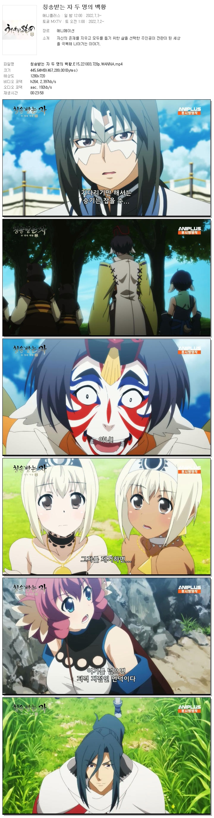 | 칭송받는 자 두 명의 백황.E15.221003.720p.WANNA.mp4 | 445.6 M | 00:23:58 | 1280x720 |