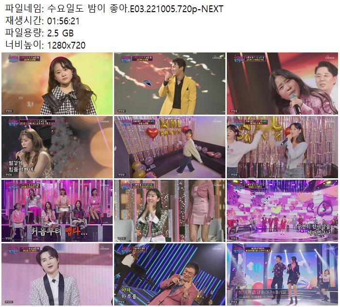 | 수요일도 밤이 좋아.E03.221005.720p-NEXT.mp4 | 2.5 G | 01:56:21 | 1280x720 |