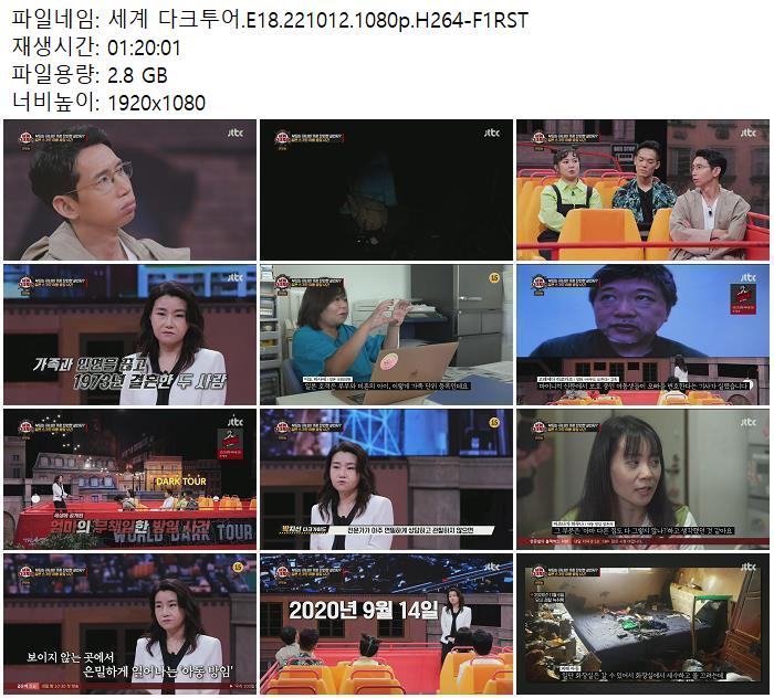| 세계 다크투어.E18.221012.1080p.H264-F1RST.mp4 | 2.8 G | 01:20:01 | 1920x1080 |