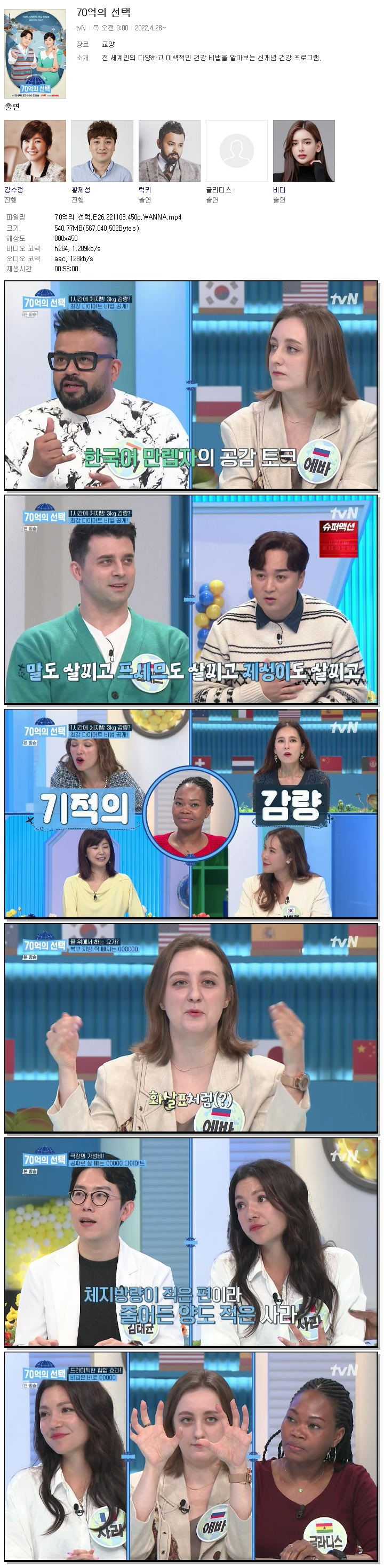 | 70억의 선택.E26.221103.450p.WANNA.mp4 | 540.8 M | 00:53:00 | 800x450 |