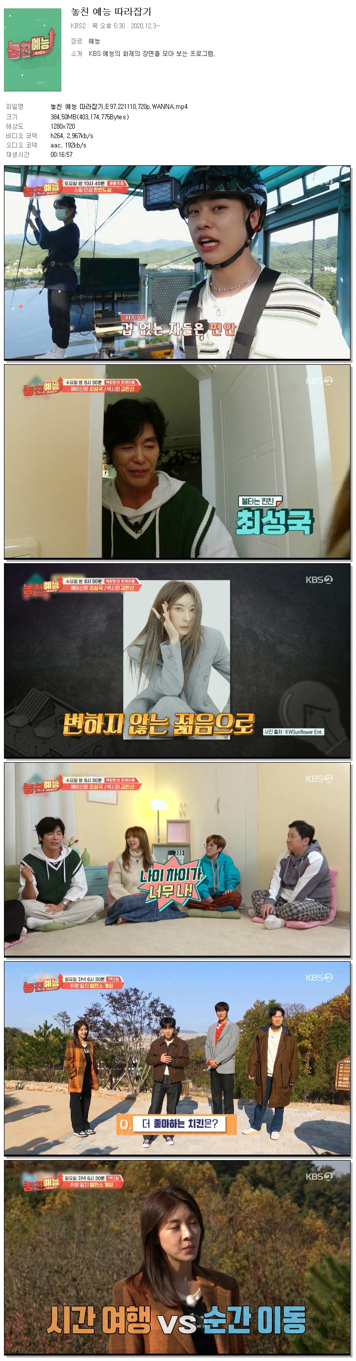 | 놓친 예능 따라잡기.E97.221110.720p.WANNA.mp4 | 384.5 M | 00:16:57 | 1280x720 |