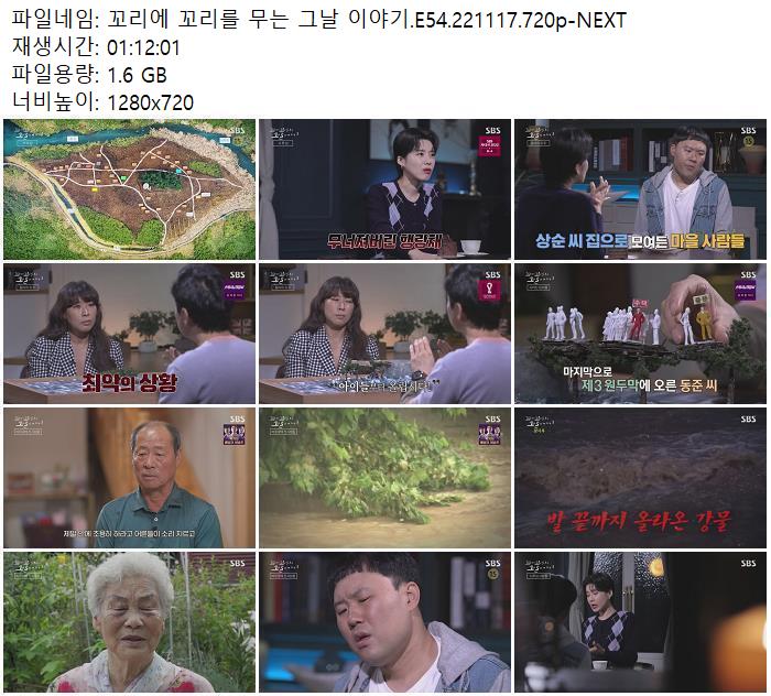 | 꼬리에 꼬리를 무는 그날 이야기.E54.221117.720p-NEXT.mp4 | 1.6 G | 01:12:01 | 1280x720 |