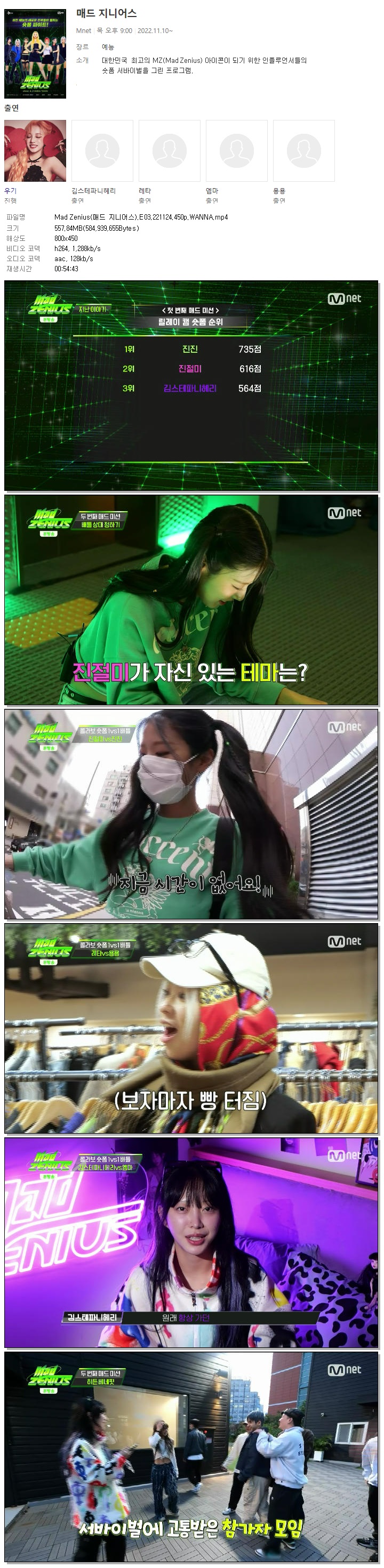 Mad Zenius(매드 지니어스).E03.221124.450p.WANNA.mp4 557.8 M 00:54:43 800x450