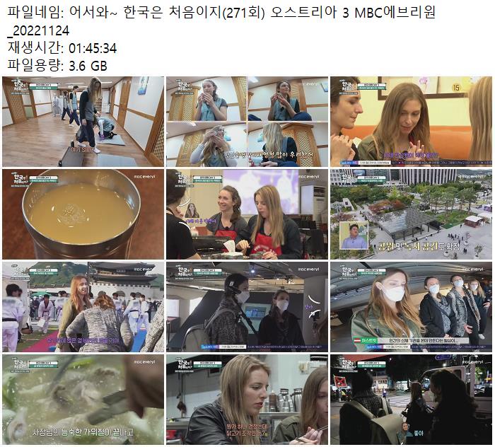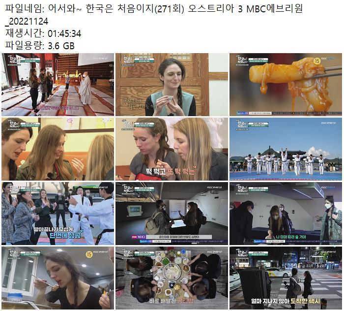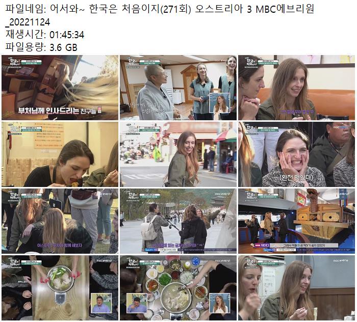 어서와~ 한국은 처음이지(271회) 오스트리아 3 MBC에브리원_20221124.mp4 3.6 G 01:45:34 1920x1080