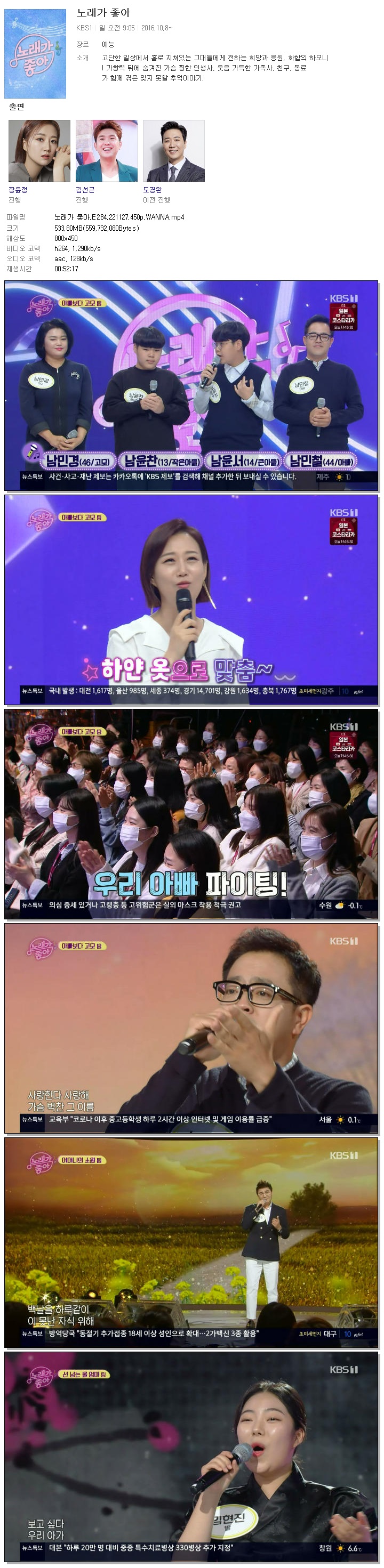 | 노래가 좋아.E284.221127.450p.WANNA.mp4 | 533.8 M | 00:52:17 | 800x450 |