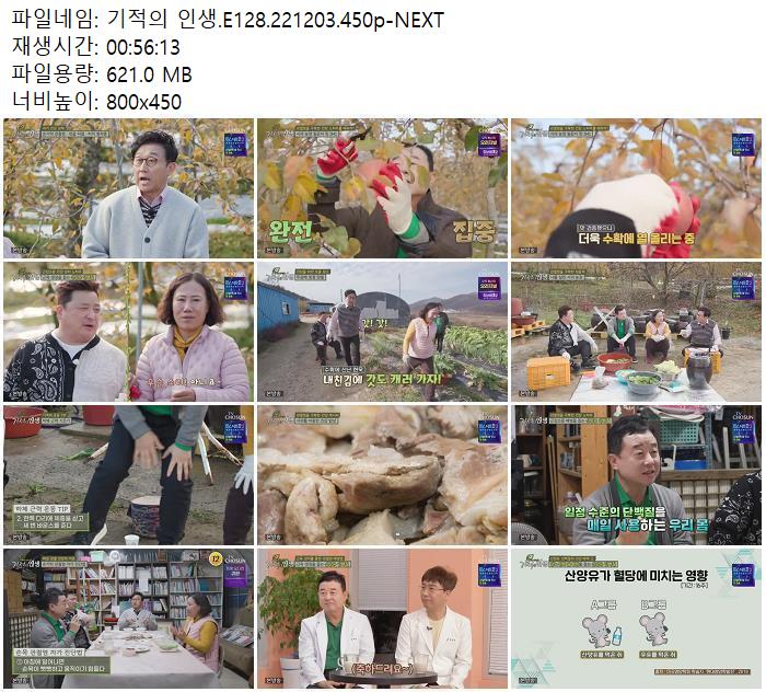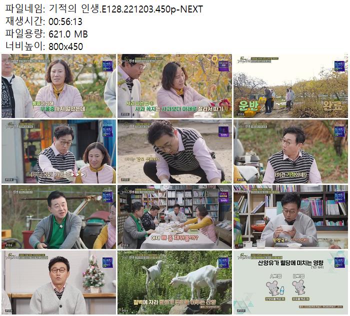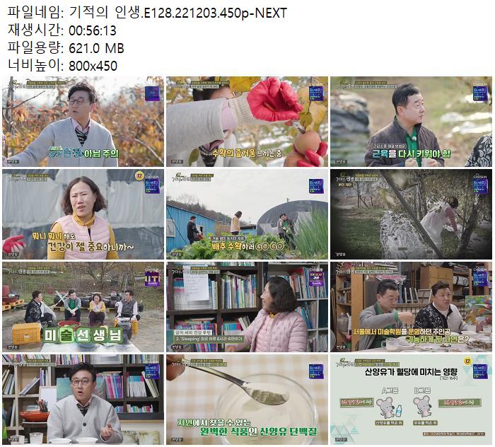 | 기적의 인생.E128.221203.450p-NEXT.mp4 | 621 M | 00:56:13 | 800x450 |