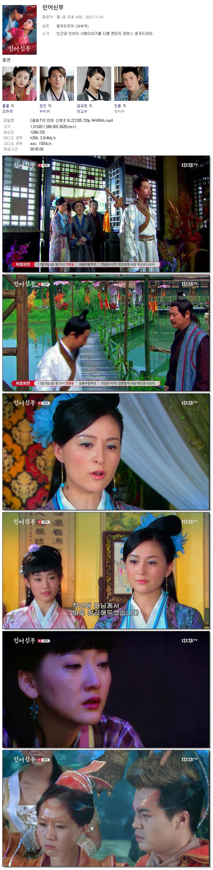 | [중화TV] 인어 신부.E16.221205.720p.WANNA.mp4 | 1 G | 00:45:08 | 1280x720 |