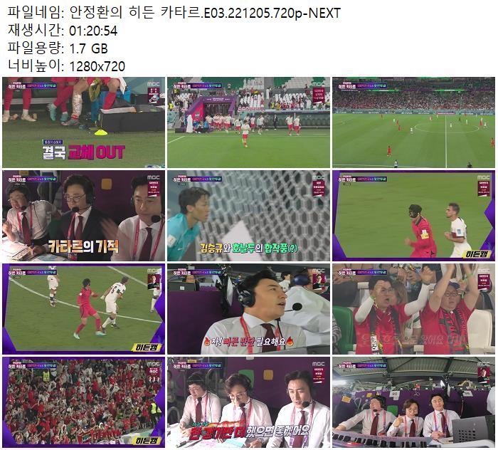 | 안정환의 히든 카타르.E03.221205.720p-NEXT.mp4 | 1.7 G | 01:20:54 | 1280x720 |