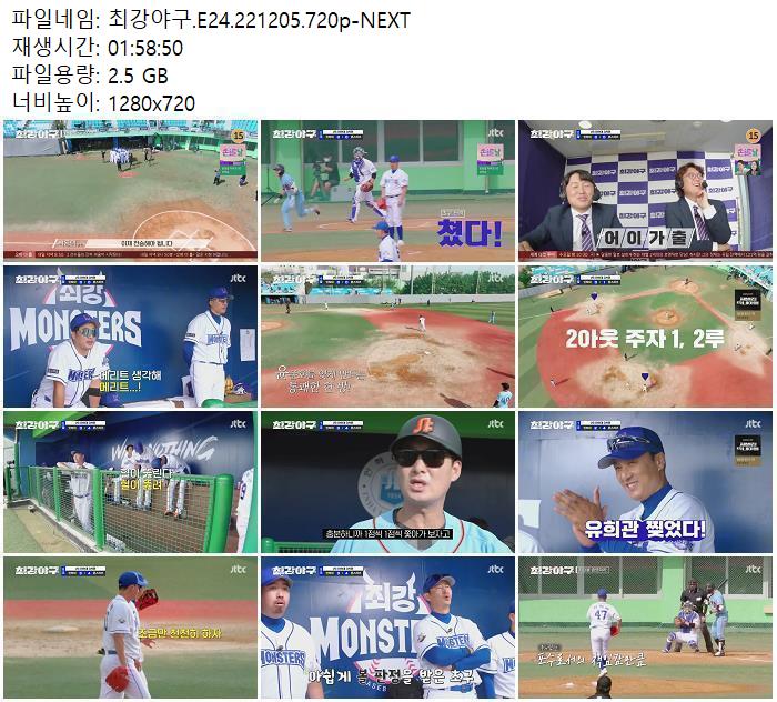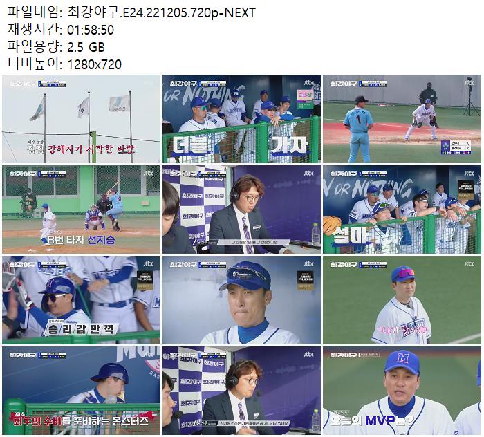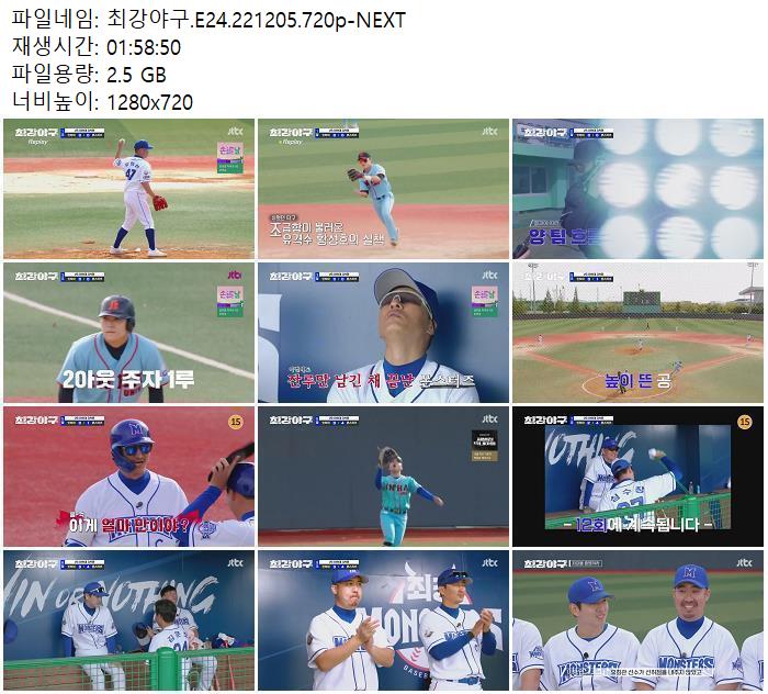 | 최강야구.E24.221205.720p-NEXT.mp4 | 2.5 G | 01:58:50 | 1280x720 |
