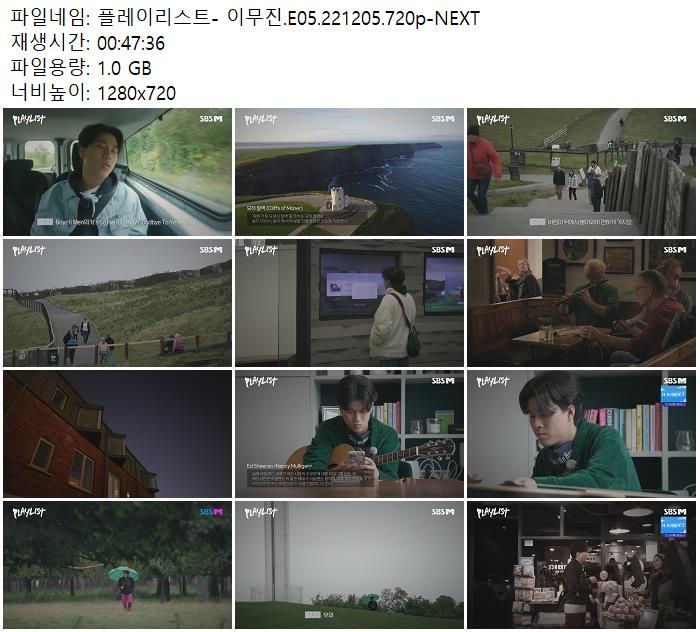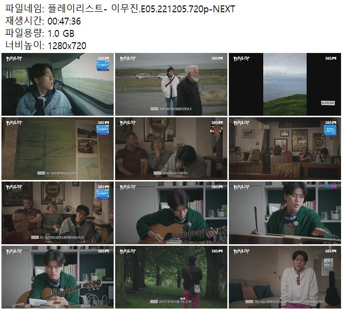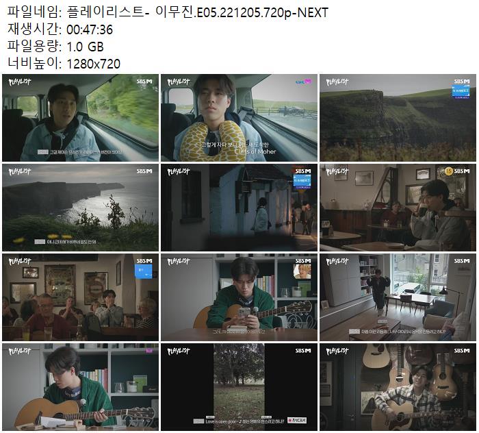 | 플레이리스트- 이무진.E05.221205.720p-NEXT.mp4 | 1 G | 00:47:36 | 1280x720 |