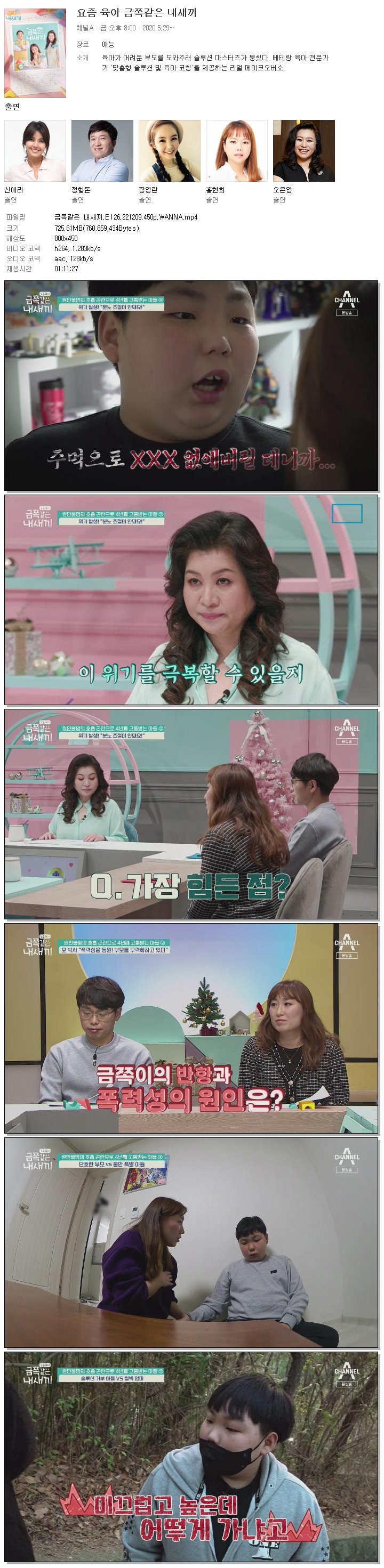 | 금쪽같은 내새끼.E126.221209.450p.WANNA.mp4 | 725.6 M | 01:11:27 | 800x450 |