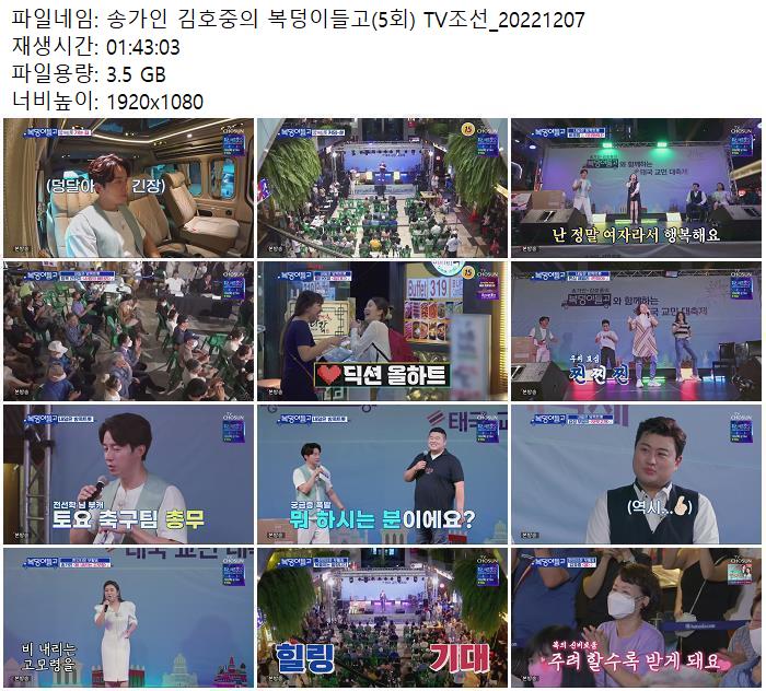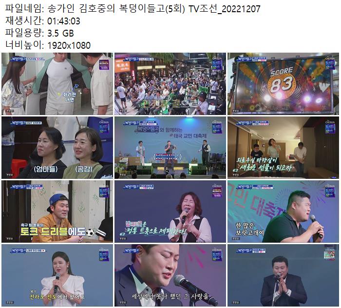 송가인 김호중의 복덩이들고(5회) TV조선_20221207.mp4 3.5 G 01:43:03 1920x1080