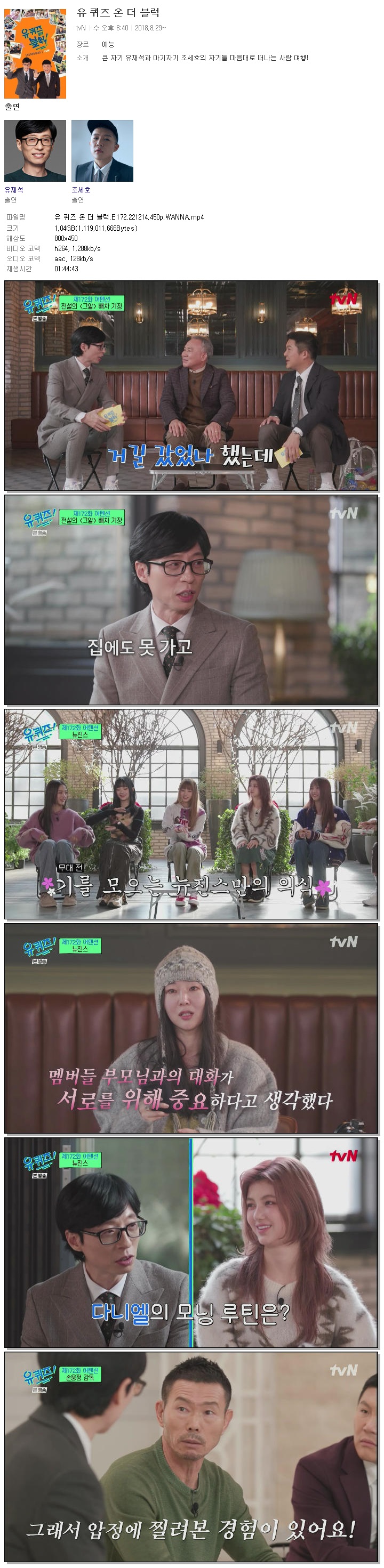 | 유 퀴즈 온 더 블럭.E172.221214.450p.WANNA.mp4 | 1 G | 01:44:43 | 800x450 |