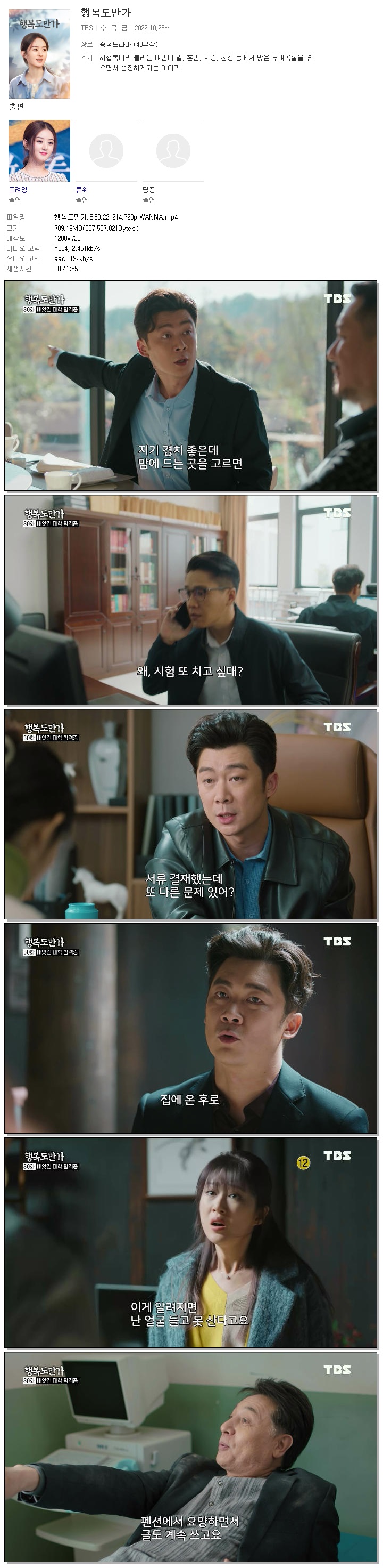 | 행복도만가.E30.221214.720p.WANNA.mp4 | 789.2 M | 00:41:35 | 1280x720 |