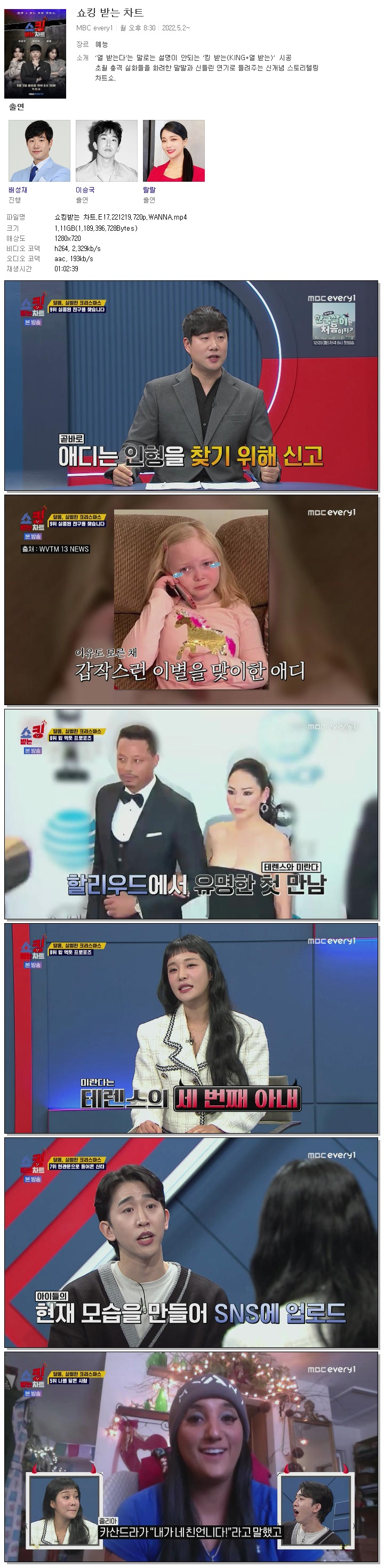 | 쇼킹받는 차트.E17.221219.720p.WANNA.mp4 | 1.1 G | 01:02:39 | 1280x720 |
