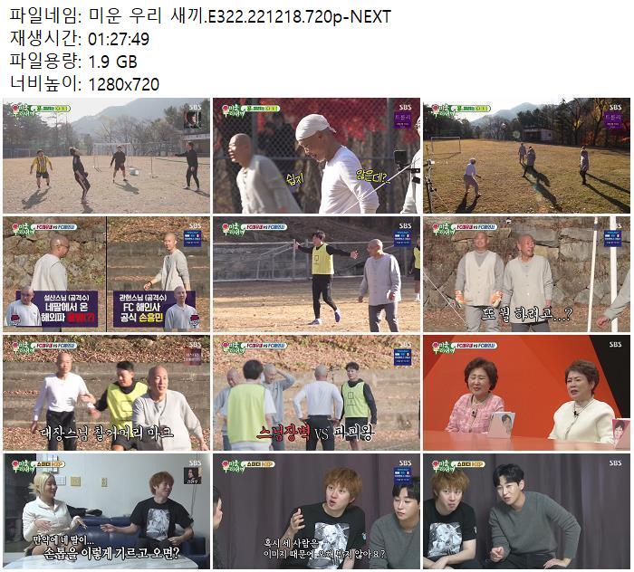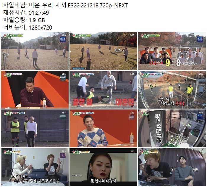 미운 우리 새끼.E322.221218.720p-NEXT.mp4 1.9 G 01:27:49 1280x720