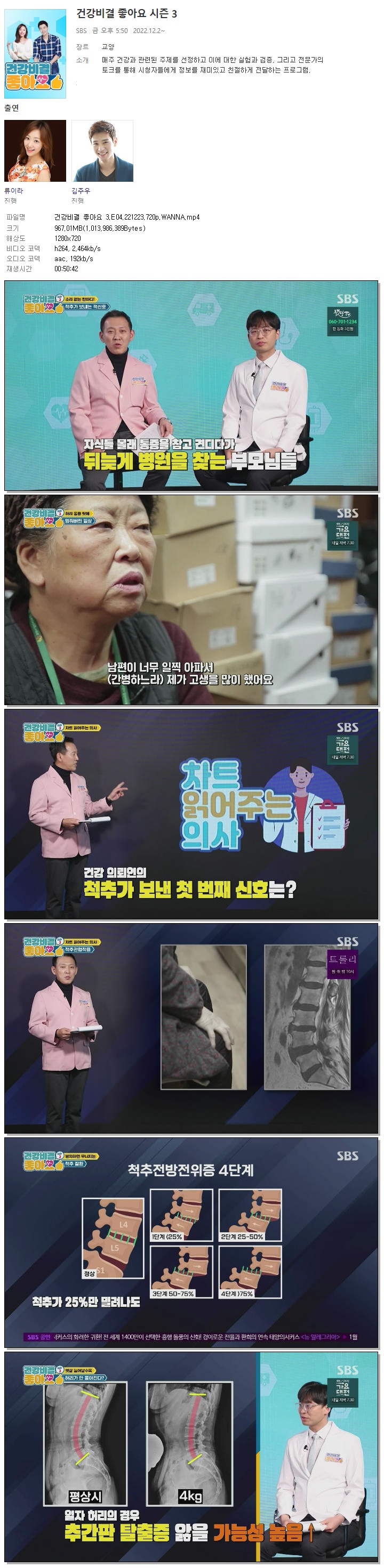 | 건강비결 좋아요 3.E04.221223.720p.WANNA.mp4 | 967 M | 00:50:42 | 1280x720 |