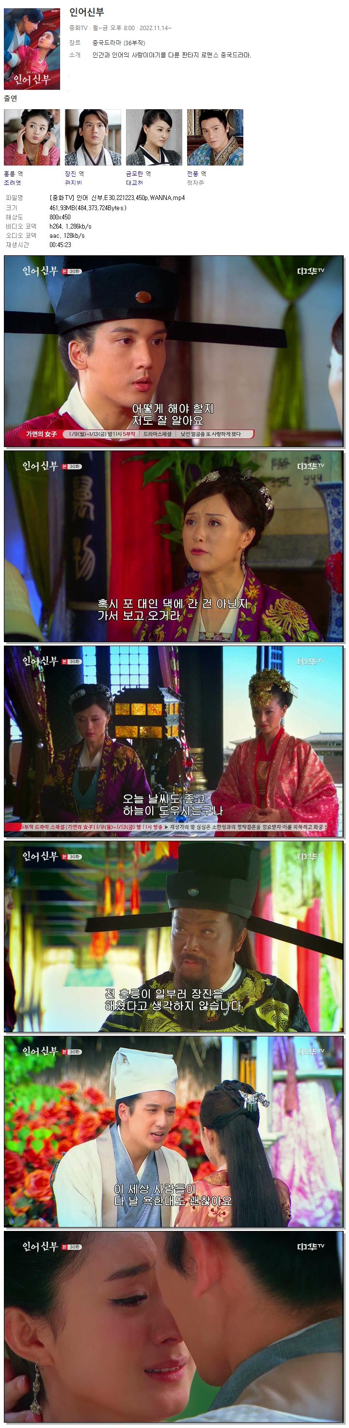 | [중화TV] 인어 신부.E30.221223.450p.WANNA.mp4 | 461.9 M | 00:45:23 | 800x450 |