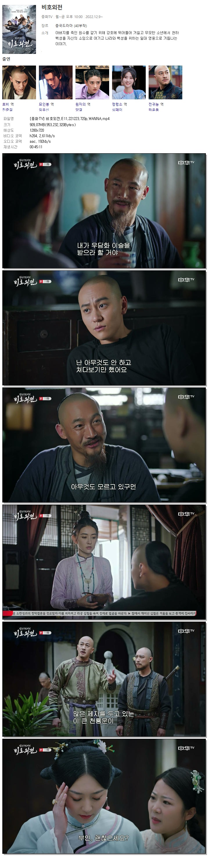 [중화TV] 비호외전.E11.221223.720p.WANNA.mp4 909.1 M 00:45:11 1280x720