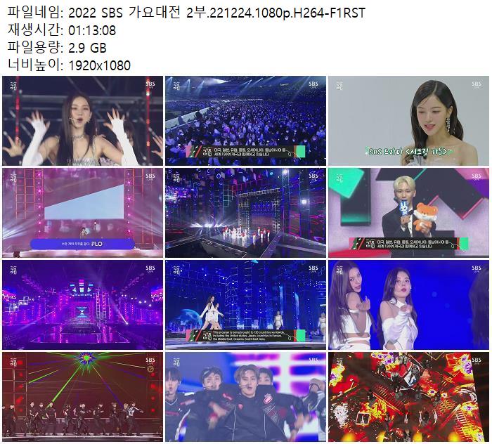 2022 SBS 가요대전 2부.221224.1080p.H264-F1RST.mp4 2.9 G 01:13:08 1920x1080