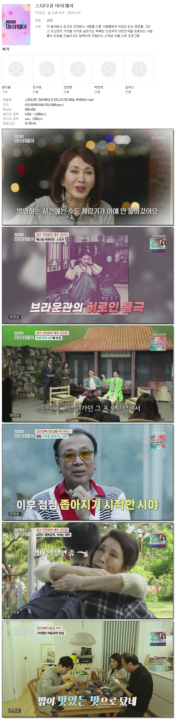 | 스타다큐 마이웨이.E326.221225.450p.WANNA.mp4 | 618.8 M | 01:00:44 | 800x450 |