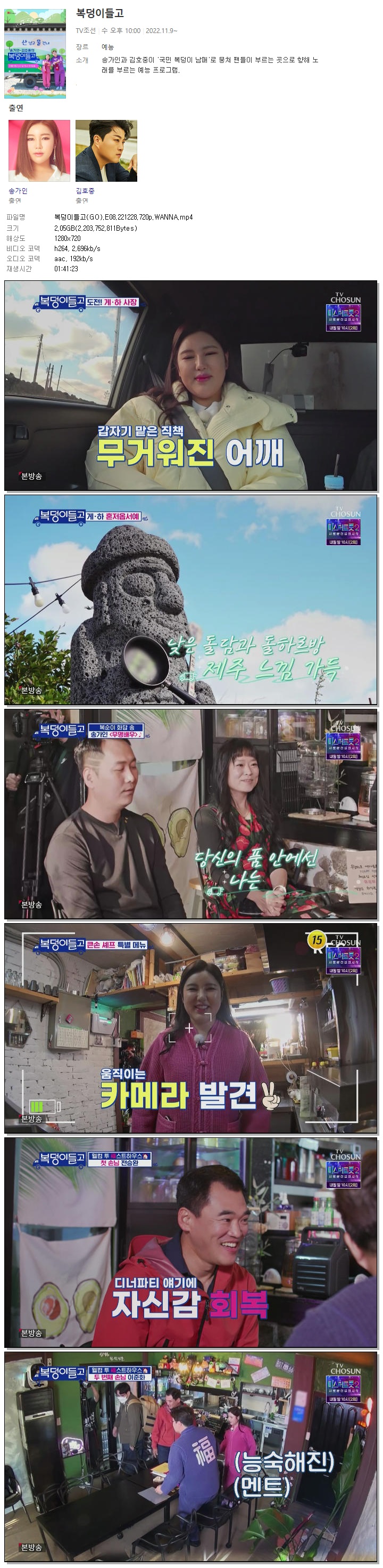 | 복덩이들고(GO).E08.221228.720p.WANNA.mp4 | 2.1 G | 01:41:23 | 1280x720 |