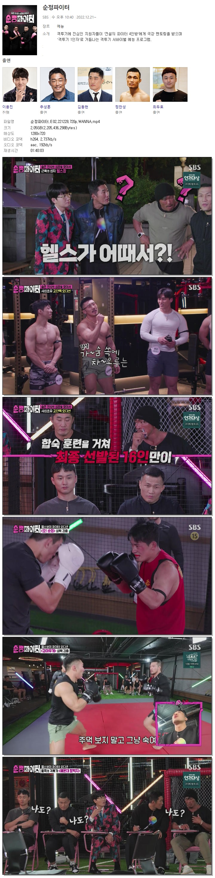 | 순정파이터.E02.221228.720p.WANNA.mp4 | 2.1 G | 01:40:03 | 1280x720 |