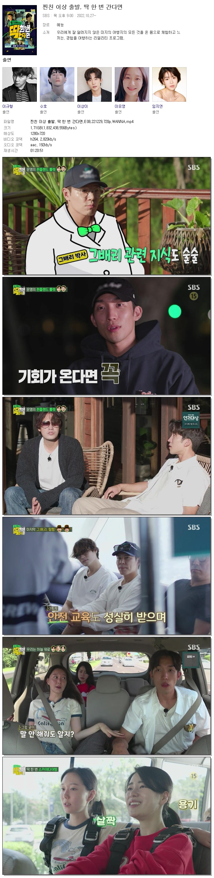 | 찐친 이상 출발, 딱 한 번 간다면.E08.221229.720p.WANNA.mp4 | 1.7 G | 01:20:51 | 1280x720 |