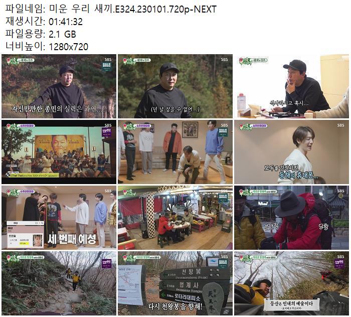 미운 우리 새끼.E324.230101.720p-NEXT.mp4 2.1 G 01:41:32 1280x720