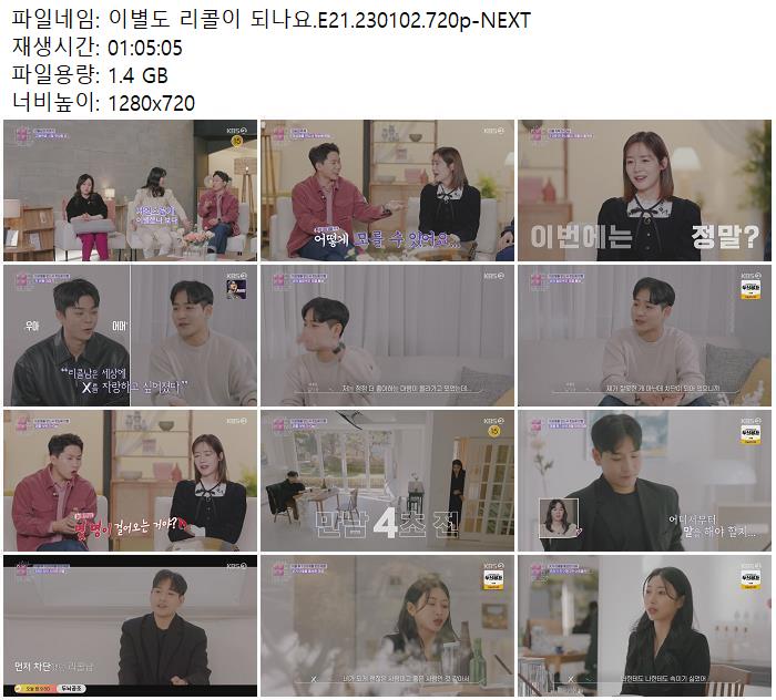 | 이별도 리콜이 되나요.E21.230102.720p-NEXT.mp4 | 1.4 G | 01:05:05 | 1280x720 |