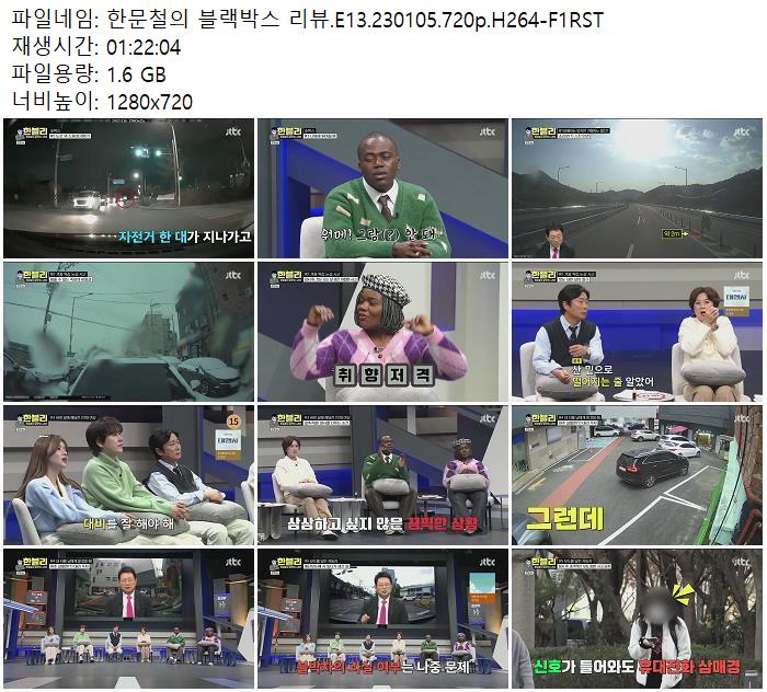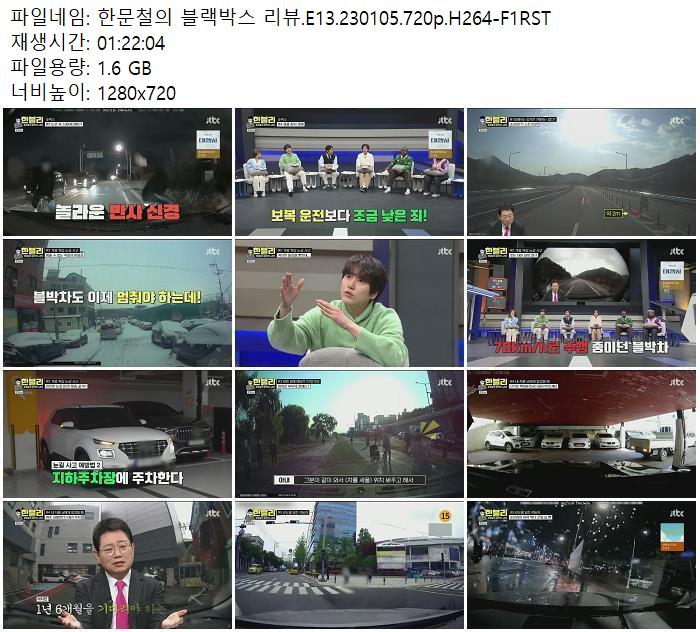 | 한문철의 블랙박스 리뷰.E13.230105.720p.H264-F1RST.mp4 | 1.6 G | 01:22:04 | 1280x720 |