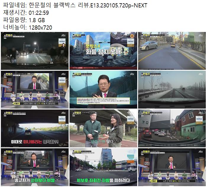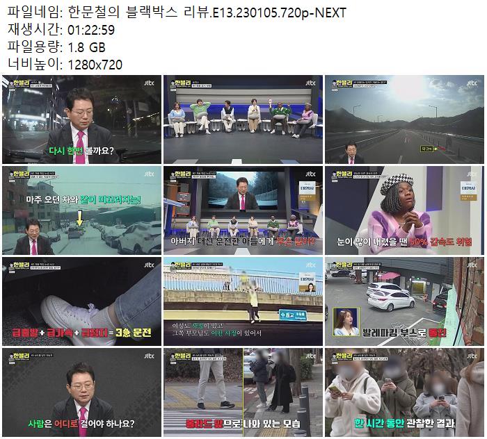 | 한문철의 블랙박스 리뷰.E13.230105.720p-NEXT.mp4 | 1.8 G | 01:22:59 | 1280x720 |