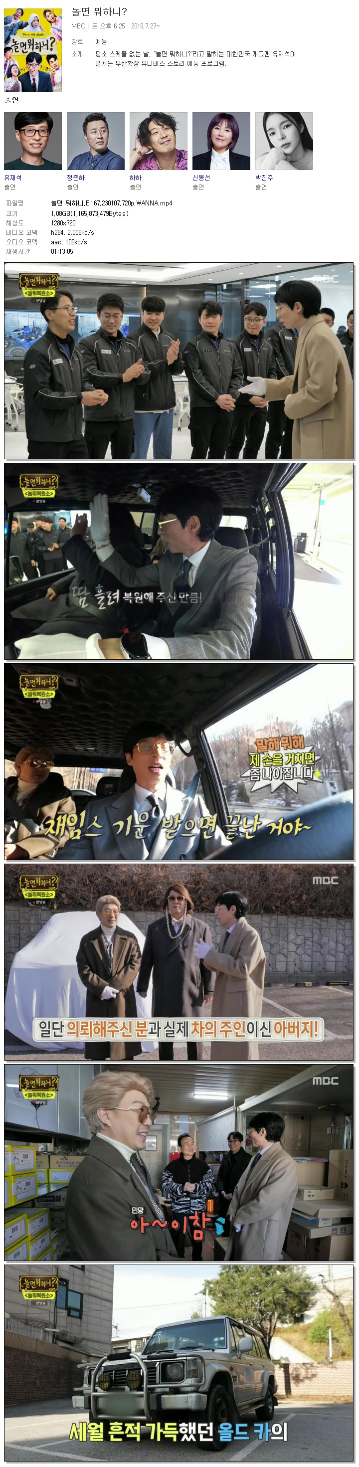 | 놀면 뭐하니.E167.230107.720p.WANNA.mp4 | 1.1 G | 01:13:05 | 1280x720 |