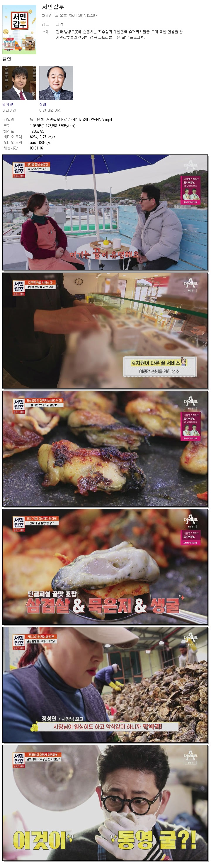 | 독한인생 서민갑부.E417.230107.720p.WANNA.mp4 | 1.1 G | 00:51:16 | 1280x720 |