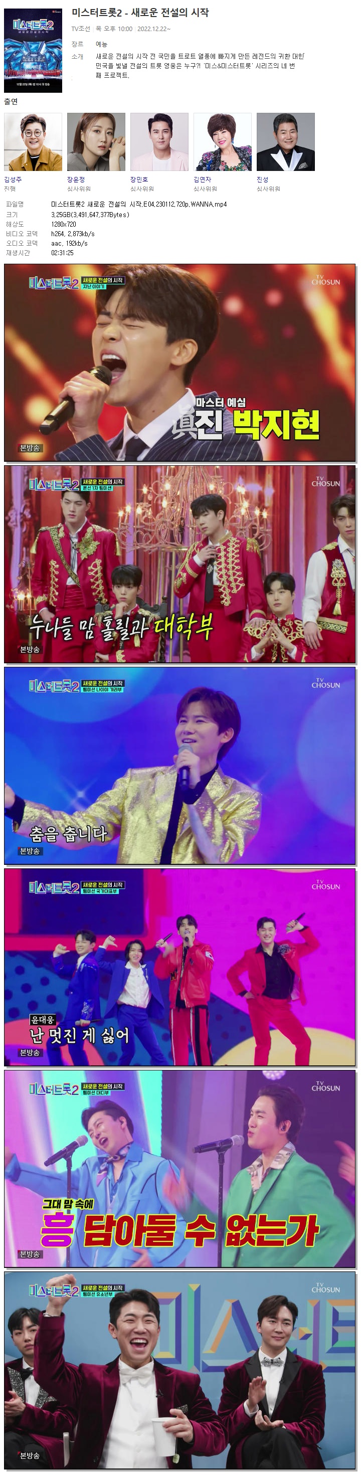 미스터트롯2 새로운 전설의 시작.E04.230112.720p.WANNA.mp4 3.3 G 02:31:25 1280x720