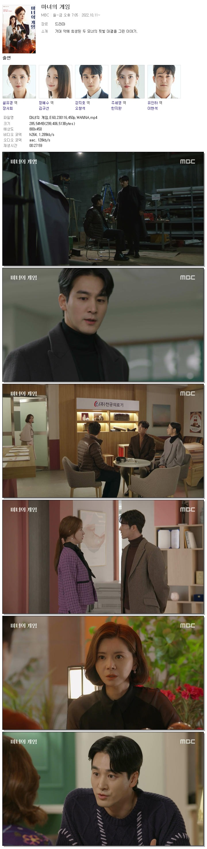 | 마녀의 게임.E60.230116.450p.WANNA.mp4 | 285.5 M | 00:27:59 | 800x450 |
