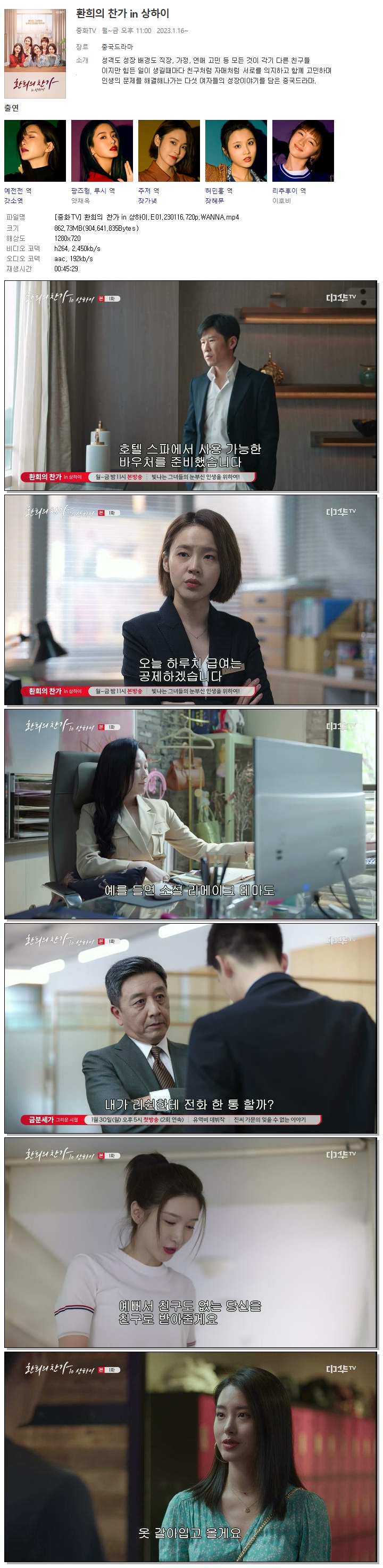 [중화TV] 환희의 찬가 in 상하이.E01.230116.720p.WANNA.mp4 862.7 M 00:45:29 1280x720