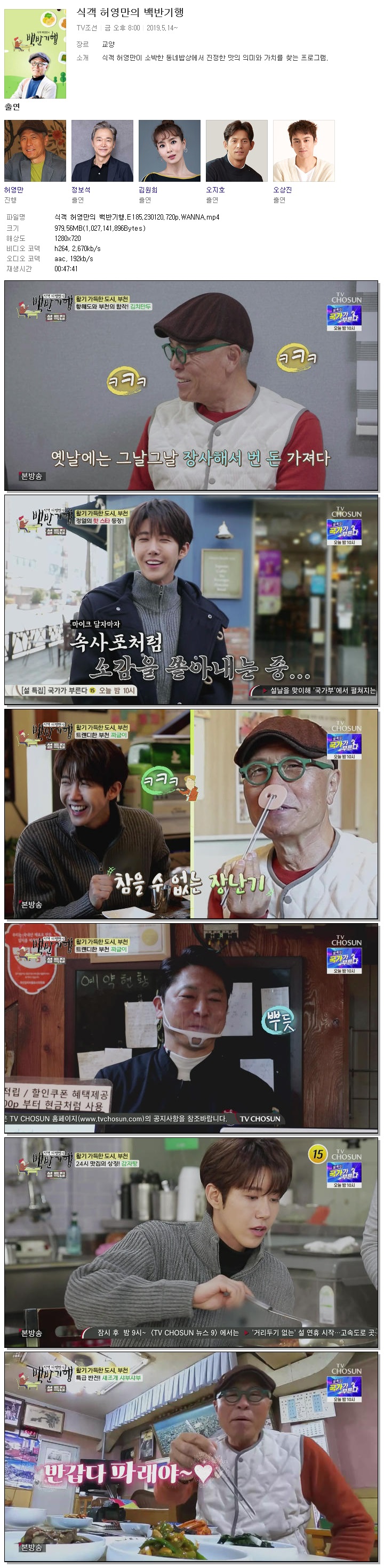 | 식객 허영만의 백반기행.E185.230120.720p.WANNA.mp4 | 979.6 M | 00:47:41 | 1280x720 |