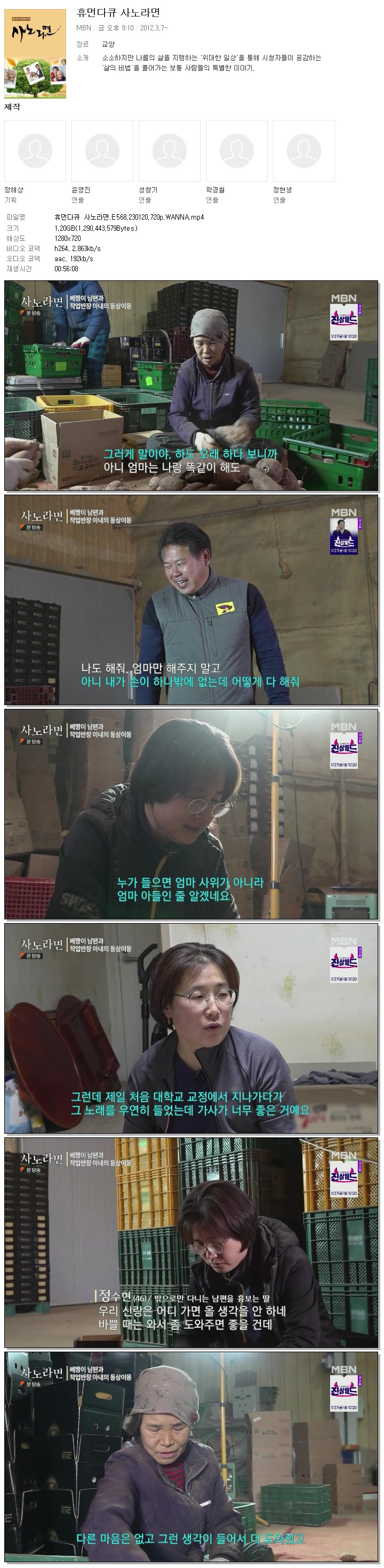 휴먼다큐 사노라면.E568.230120.720p.WANNA 다시보기 토렌트